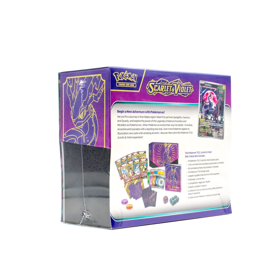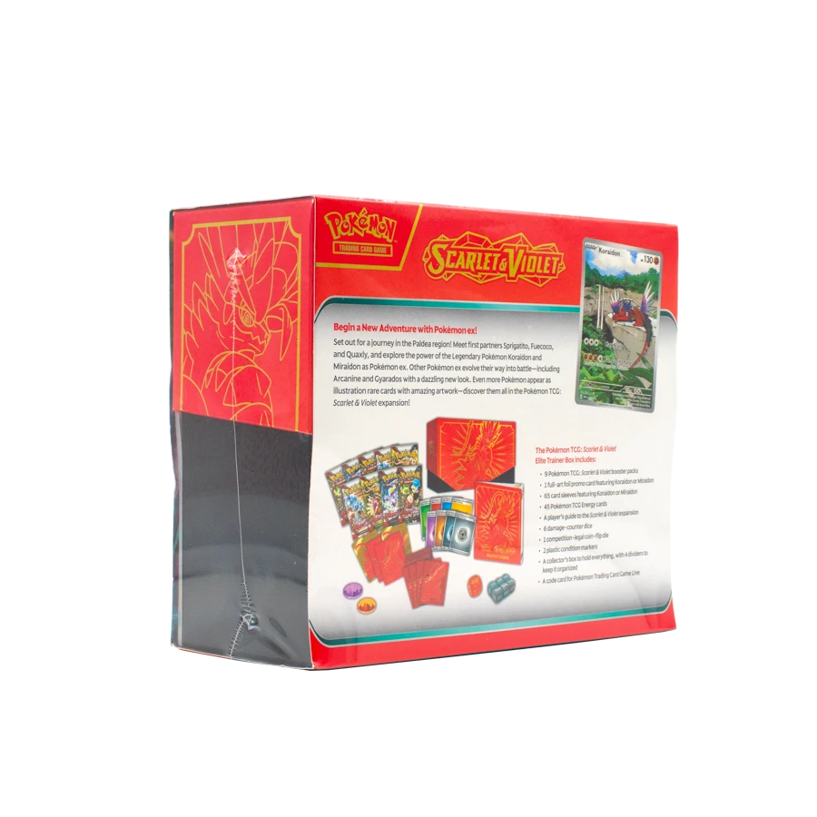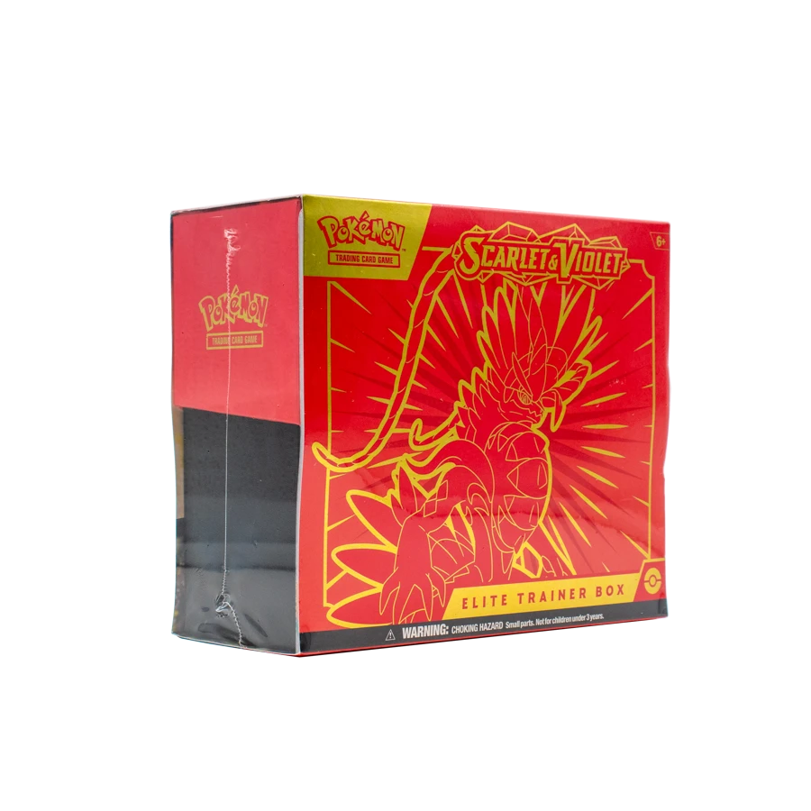 The Pokemon Trading Card Game Scarlet & Violet Elite Trainer Box introduces the ninth generation of Pokemon with a focus on the new Pokemon from the Paldea region. This inaugural expansion of the Scarlet & Violet series establishes the foundation for all subsequent sets, featuring the region’s new starter Pokemon – Sprigatito, Fuecoco, and Quaxly – alongside the legendary mascots Koraidon and Miraidon. The dual-themed packaging, in scarlet red and violet purple, represents the two versions of the corresponding video games.